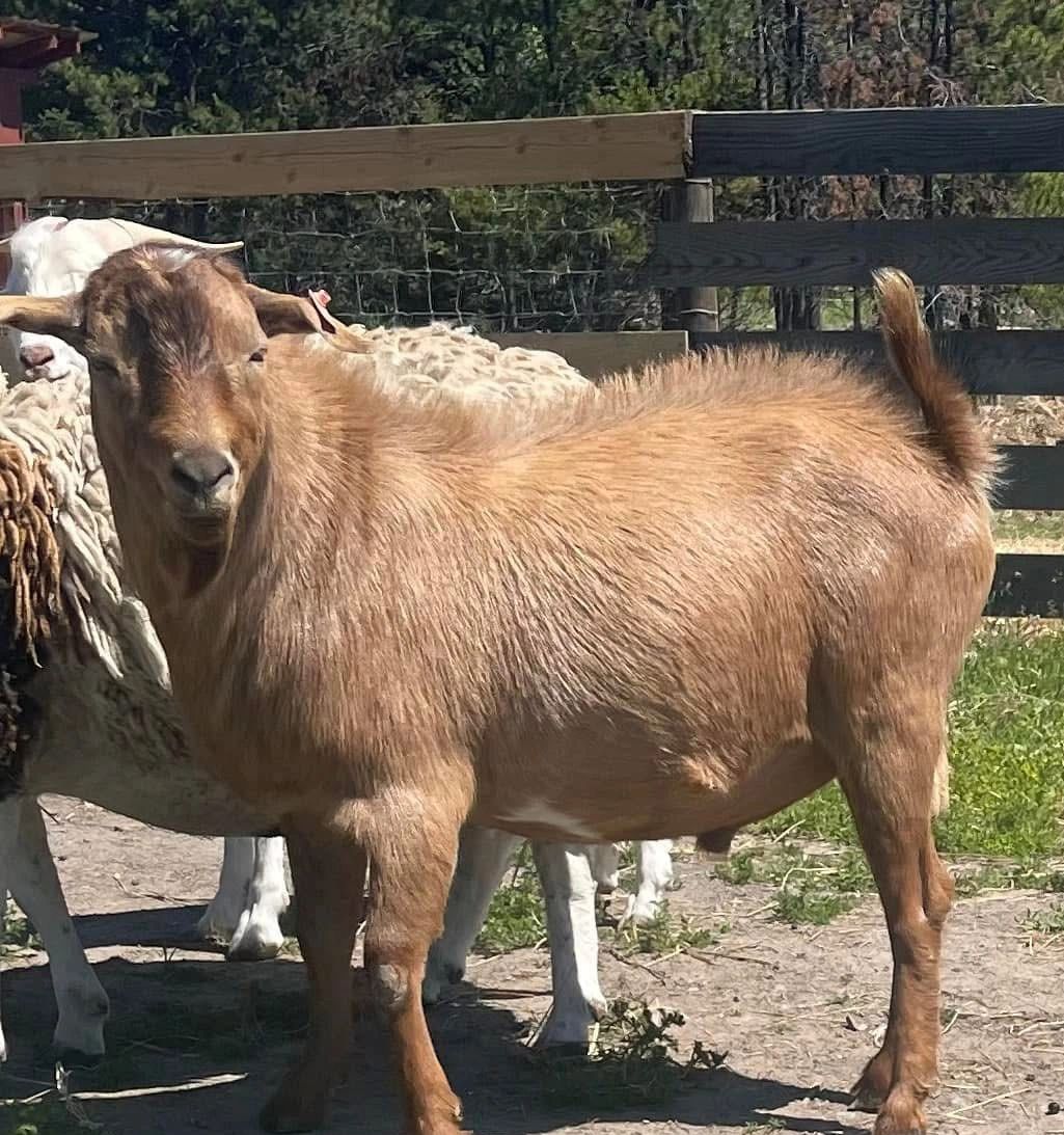 LWC Rooster joined our herd in the fall of 2025 as a young buck that exhibited strong libido and a friendly personality. As a twin he weighed 7.1lbs at birth and although we do not have his 90 day weight, his 150 day weight was 86lbs. We look forward to seeing him fill out and what he can add to our herd genetics.