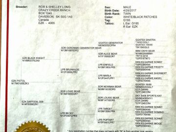Papers of goats for sale or used in lineage of doelings for sale.